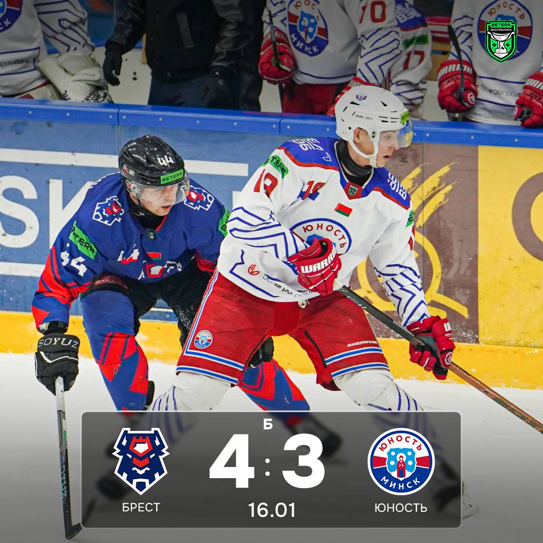 Матч Юность 16 января 2026 Уступаем по буллитам «Бресту» Забываем сегодняшний матч и готовимся ко второму поединку. Спасибо за поддержку, «красно-синие».