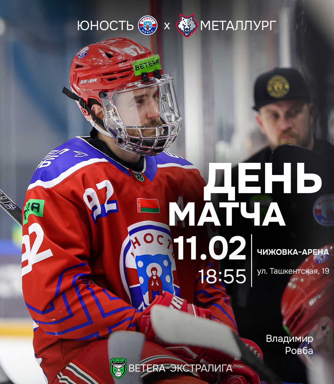Матч Юность 11 февраля 2026 Второй матч против «Металлурга» Идем за реваншем. «Юность» - «Металлург» 11 февраля, 18:55 Минск. «Чижовка-Арена» Трансляция на YouTube-канале «Хоккей Беларуси | Экстралига»