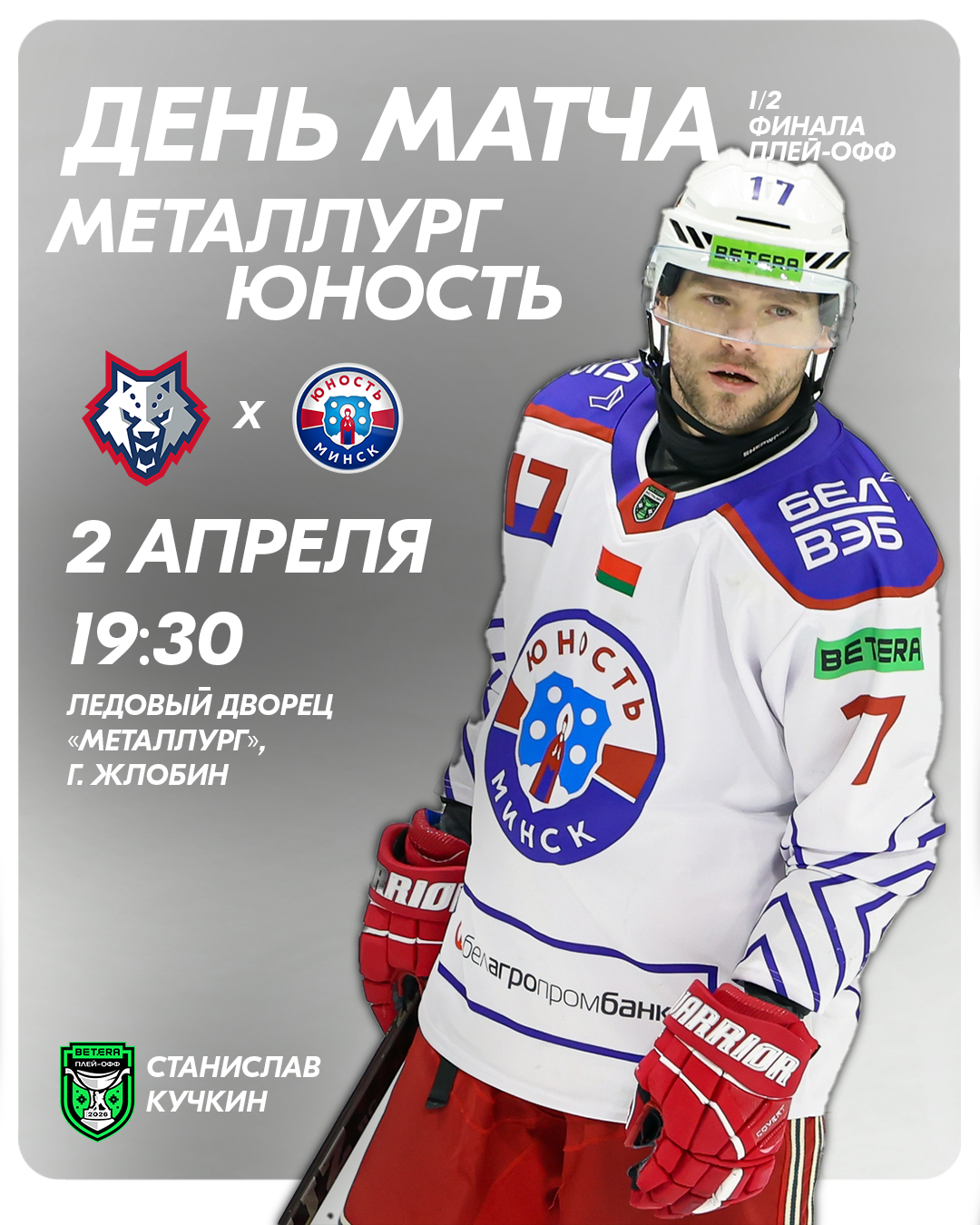 Матч Юность 02 апреля 2026 Сегодня сыграем в Жлобине Металлург - Юность В серии 0:2 Betera-Экстралига 2 апреля, 19:30 Жлобин. Ледовый Дворец «Металлург» Хоккей Беларуси | Экстралига Беларусь 5