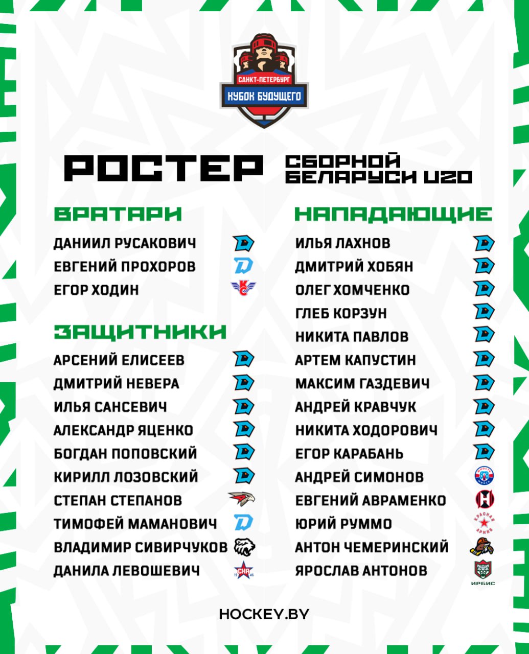 Нападающий Андрей Симонов (2007) и защитник Тимофей Маманович (2006) вызваны в молодежную сборную на ноябрьский Кубок Будущего, который пройдет 6-9 ноября в Санкт-Петербурге